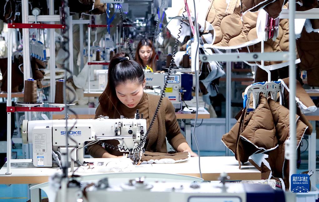 10月15日,河南省商丘市睢陽高新區東霞制衣有限公司工人趕制羽絨服訂單。