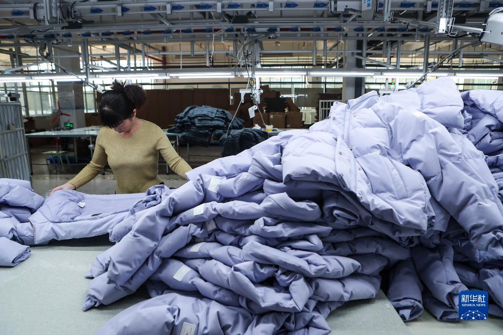 10月15日,河南省商丘市睢陽高新區(qū)東霞制衣有限公司工人趕制羽絨服訂單。