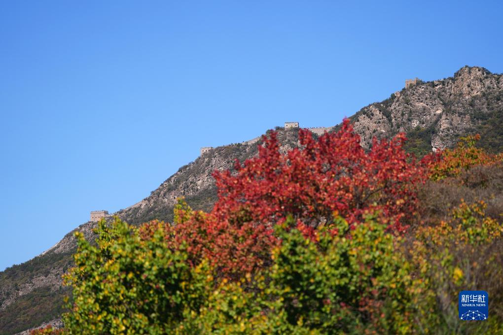掩映在紅葉中的司馬臺長城(10月15日攝)。