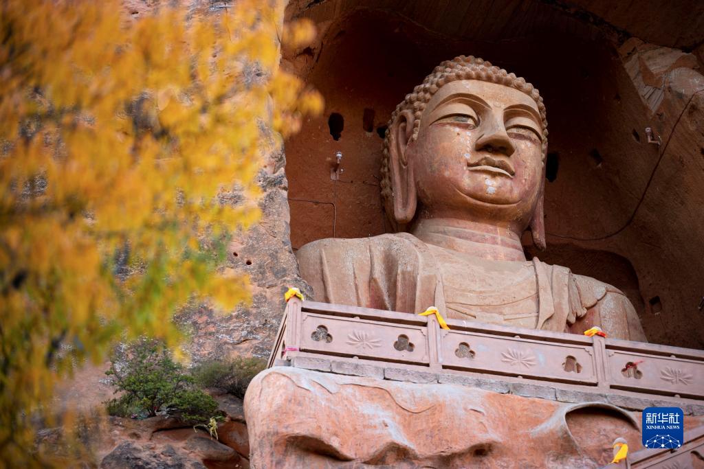 這是10月14日拍攝的須彌山石窟景區。