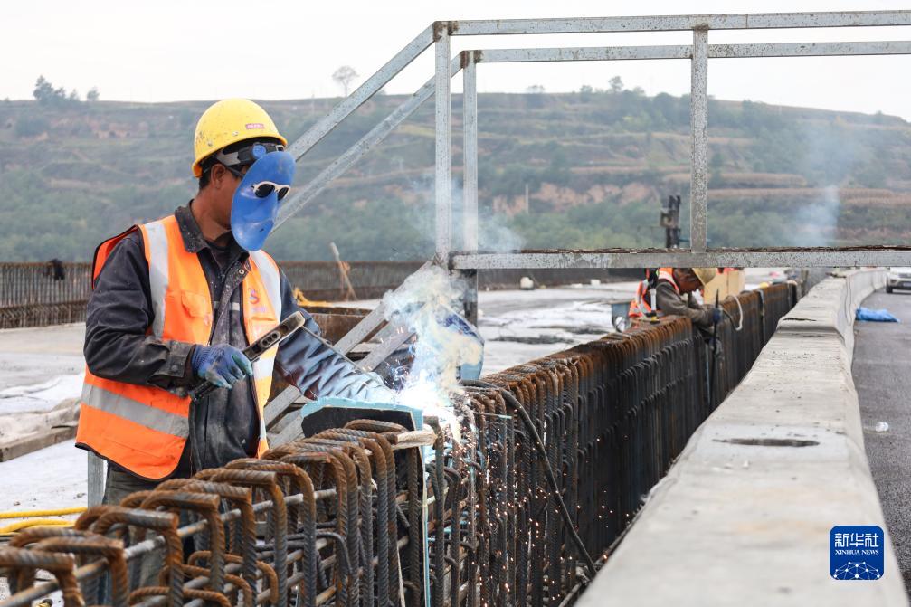 10月13日,工人在甘肅省平?jīng)鍪芯硟?nèi)的S28靈華高速一期、二期及東延線項(xiàng)目現(xiàn)場(chǎng)施工。
