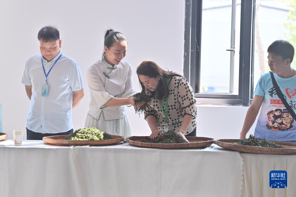 10月15日,在梧州市蒼梧縣六堡鎮六堡茶文化廣場,觀眾體驗制作六堡茶。
