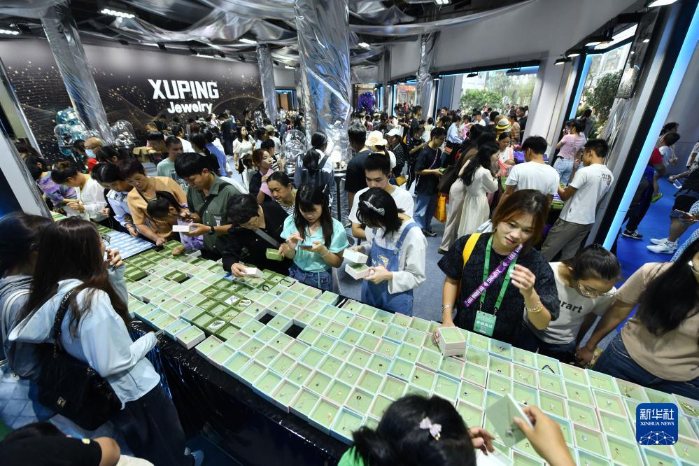 10月15日,在梧州市六堡茶城,觀眾選購飾品。