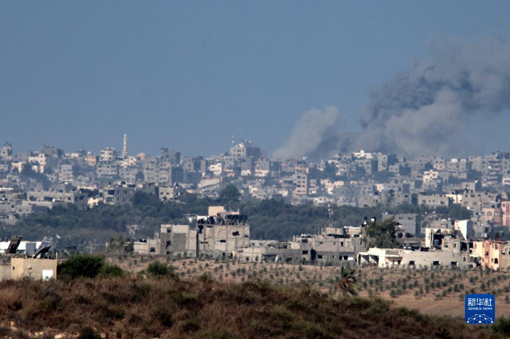 這是10月15日在加沙邊境以色列一側(cè)拍攝的以色列轟炸加沙地帶后升起的濃煙。