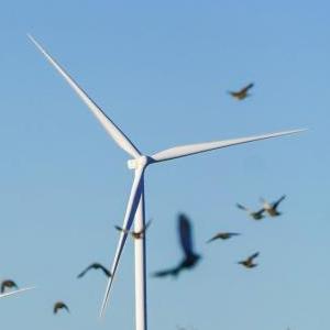 6月12日,在阿根廷丘布特省馬德林港的羅馬布蘭卡一期風電場,項目工程師馬列(右)與當地工作人員檢查風機運行狀況。