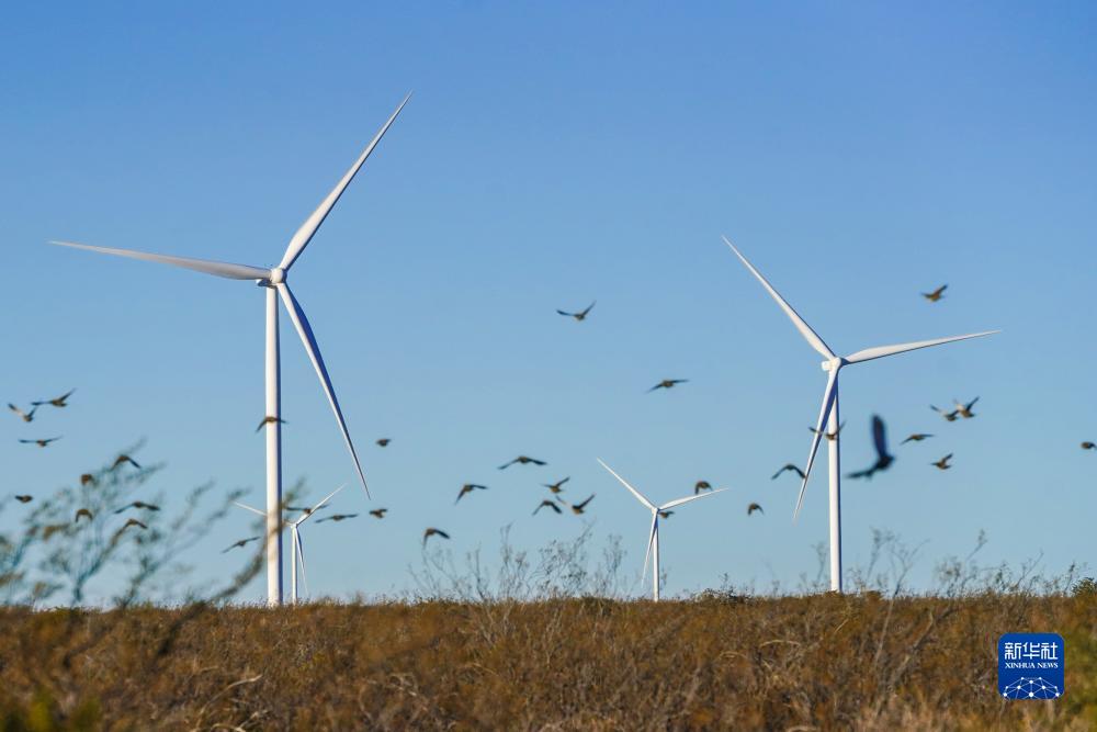 這是6月12日在阿根廷丘布特省馬德林港拍攝的羅馬布蘭卡一期風(fēng)電場。