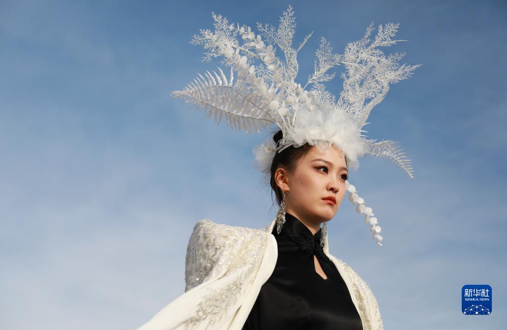 10月15日,模特在2023敦煌國際時尚周開幕秀上進行禮服展示。