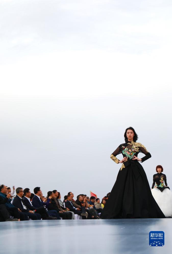 10月15日,模特在2023敦煌國際時尚周開幕秀上進行禮服展示。