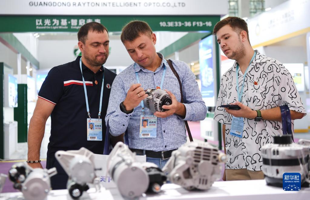 10月15日,在第134屆廣交會上,俄羅斯客商觀看汽車零配件。