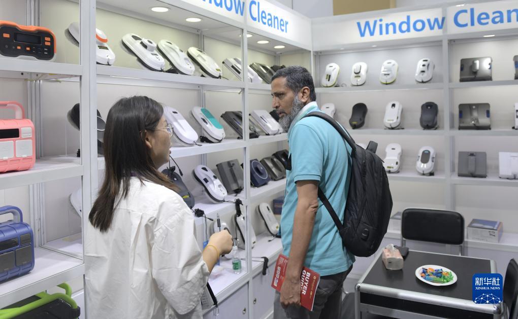 10月15日,巴基斯坦客商在廣交會上參觀、選購玻璃清洗設備。