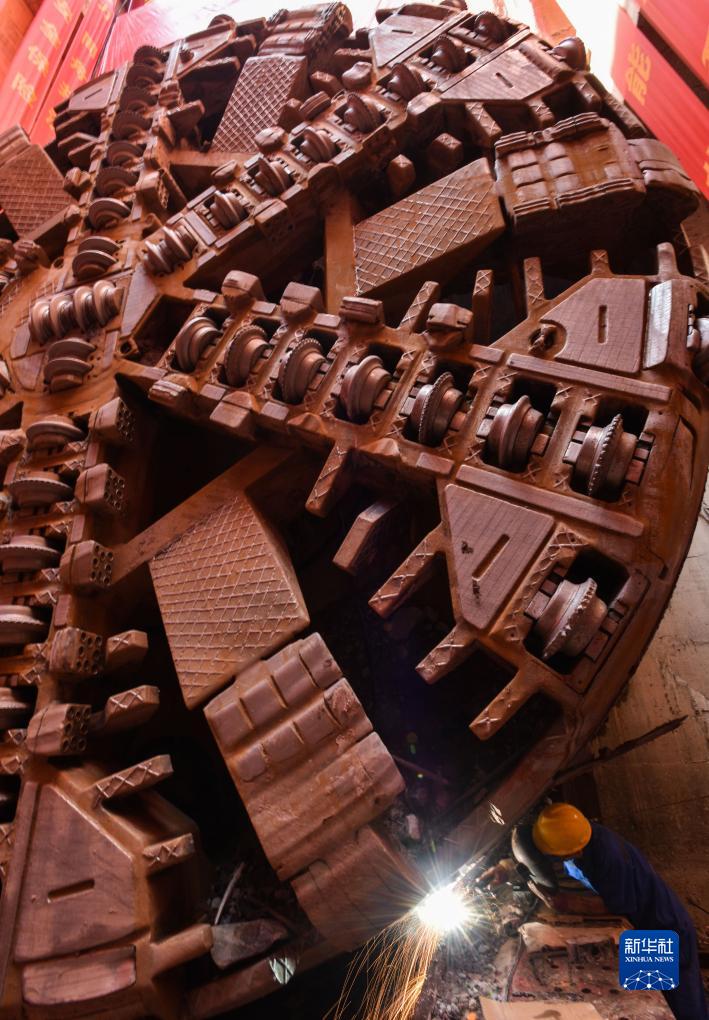 10月16日,施工人員為出洞的“開路先鋒2號”盾構機進行焊接作業(yè)。