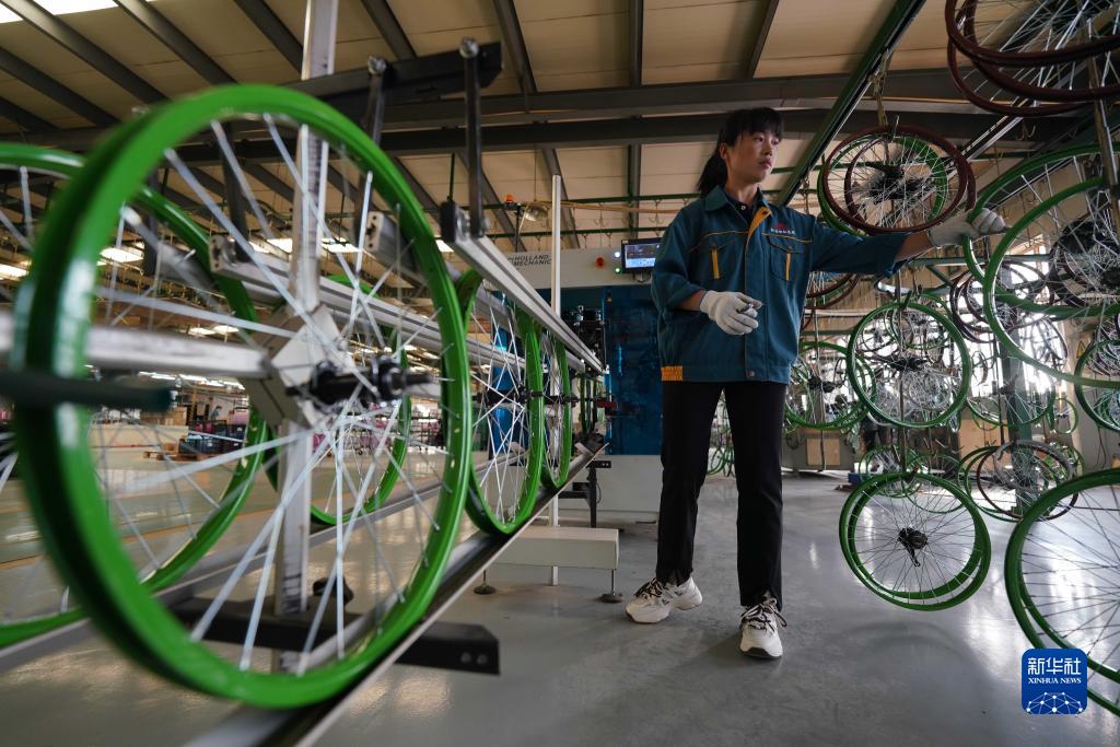 10月16日,平鄉縣一家童車生產企業的工人在童車車圈生產線上工作。