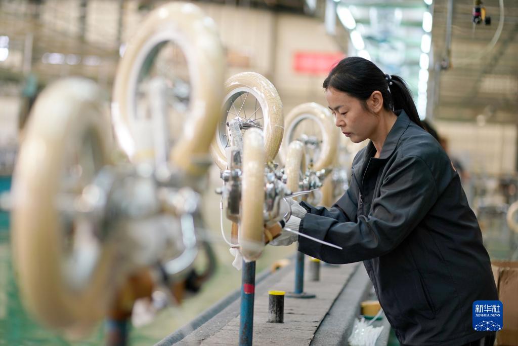 10月16日,平鄉(xiāng)縣一家童車生產(chǎn)企業(yè)的工人在組裝童車。