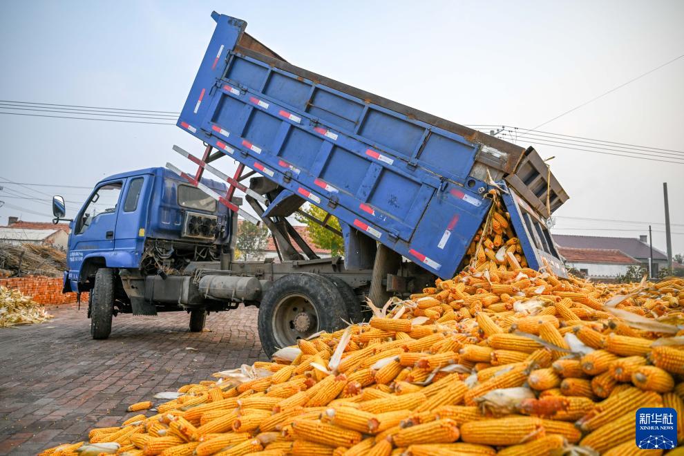 10月13日,通遼市科爾沁區豐田鎮車力花村村民駕駛農用車將收獲的玉米運到家中。