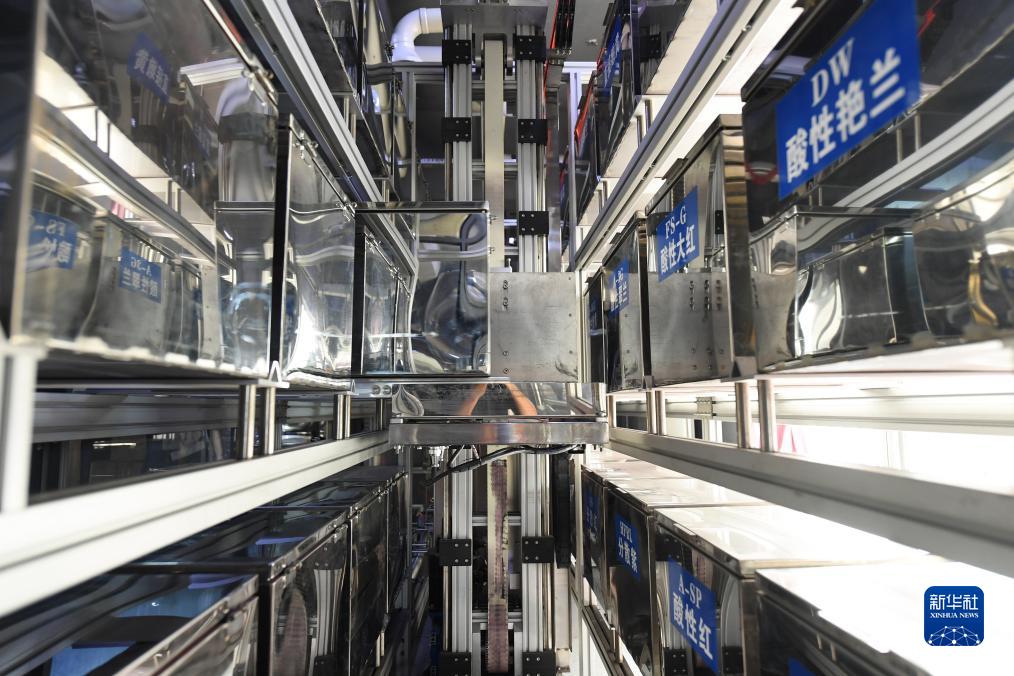 10月17日,浙江鴻大印染集團有限公司的智能機器人在進行染料稱料。