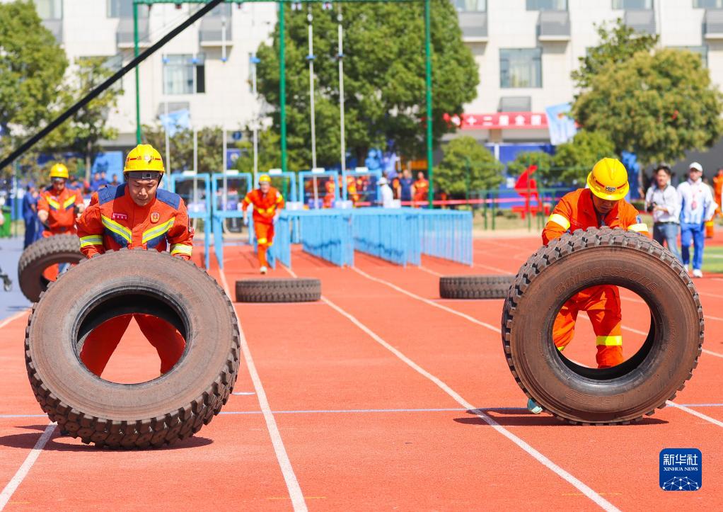 10月17日,參賽隊員在綜合技能項目中比拼。