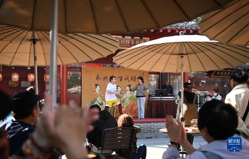 10月16日,觀眾在西安永興坊欣賞默劇表演。