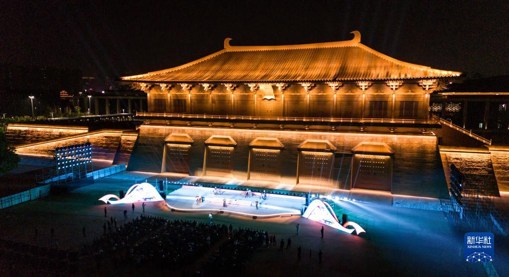 10月16日,在西安大明宮國家遺址公園,來自塞爾維亞的飛龍和巴爾干城邦樂團進行專場惠民演出(無人機照片)。