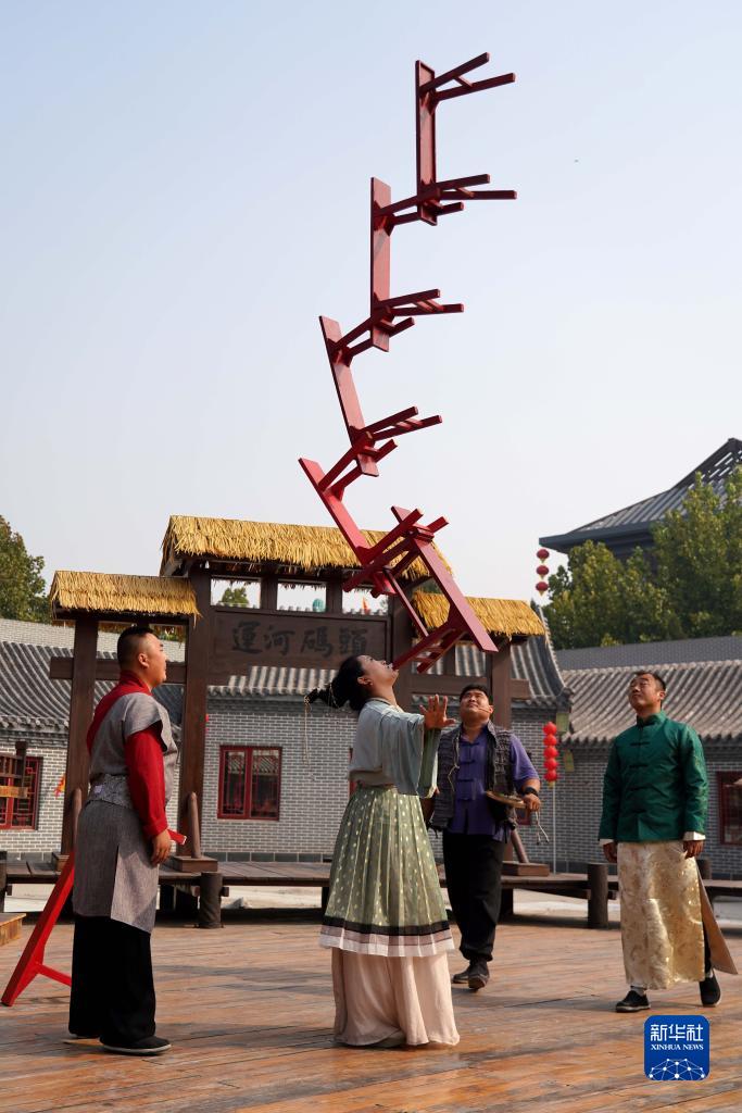 10月17日,雜技演員在吳橋雜技“九月廟會”上表演雜技節(jié)目。