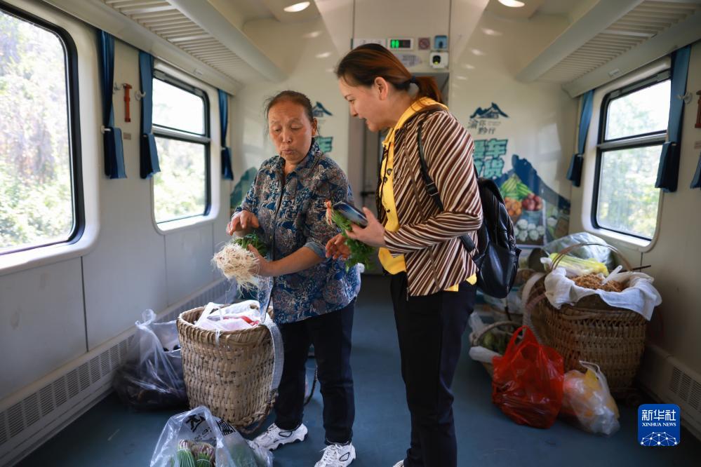 10月17日,沿線村民在5630次列車上售賣農產品。