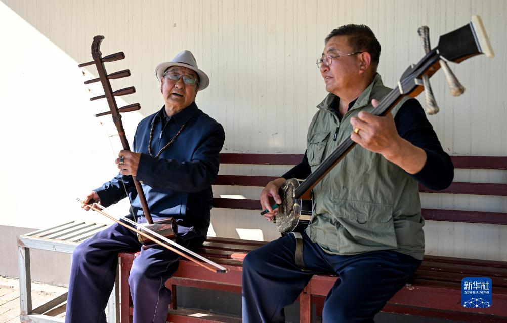 道爾吉的父親明安寶已經91歲,曾經是當地的鄉村醫生、鄉鎮衛生院院長。2018年,明安寶組織周邊老人一同組建了老年人“乃日”樂隊,他們定期排練并參加各項演出活動,在傳承“乃日”文化的同時,也豐富了牧區老年人的精神文化生活。明安寶說:“自從有了這個樂隊,我們有空就一起練習,比原來打麻將有意思多了。我以前通過看病治愈人們的身體,現在我們一起用‘乃日’文化‘治愈’大家的精神生活。”