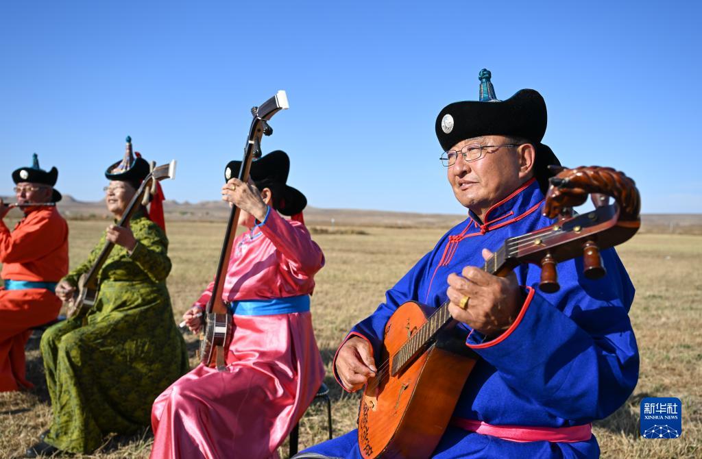牧忙喂牛羊,閑時撫琴瑟。秋忙之余,道爾吉與父親明安寶會參加當地一項特色文藝活動——“乃日”。“乃日”可譯為“禮樂”“娛樂”“聚會”,起源于元代,是一種以樂器歌舞為主的綜合性民間表演藝術,被列入內蒙古自治區級非物質文化遺產名錄。