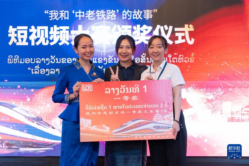 由中國駐老撾大使館舉辦的“我和‘中老鐵路’的故事”短視頻大賽16日在老撾首都萬象舉行頒獎儀式。老撾新聞文化旅游部副部長萬西與中國駐老撾大使館臨時代辦王暢共同為獲獎者頒獎。
