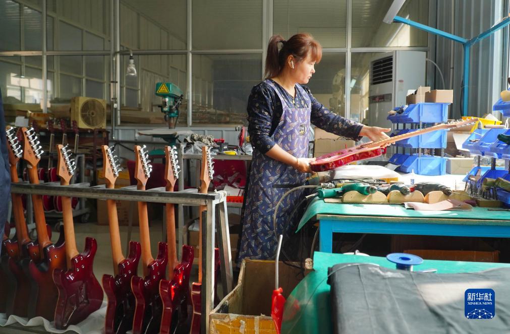 山東省昌樂縣鄌郚鎮(zhèn)是一個因樂器生產(chǎn)而聞名的特色產(chǎn)業(yè)小鎮(zhèn),該鎮(zhèn)可生產(chǎn)電吉他、電貝司、尤克里里、班卓、曼陀鈴等8大系列近400個花色品種的樂器產(chǎn)品。