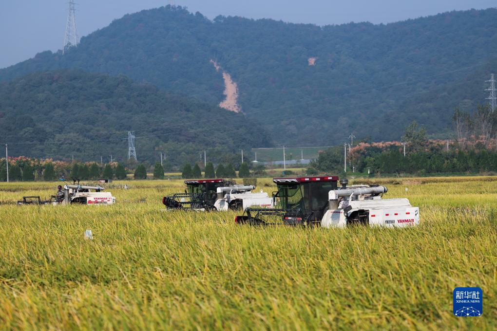 秋收時節(jié),浙江省諸暨市陶朱街道推行“企業(yè)+合作社+農(nóng)戶”專業(yè)化糧食生產(chǎn)加工一條龍模式,指導農(nóng)戶搶抓天氣晴好的有利時機,加快秋收進度,提高秋收效率,確保糧食顆粒歸倉。