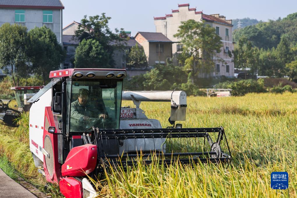 秋收時(shí)節(jié),浙江省諸暨市陶朱街道推行“企業(yè)+合作社+農(nóng)戶”專業(yè)化糧食生產(chǎn)加工一條龍模式,指導(dǎo)農(nóng)戶搶抓天氣晴好的有利時(shí)機(jī),加快秋收進(jìn)度,提高秋收效率,確保糧食顆粒歸倉。