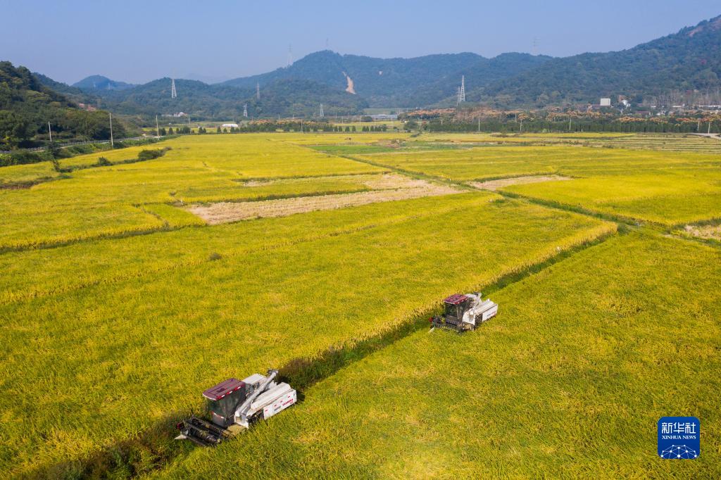 秋收時節,浙江省諸暨市陶朱街道推行“企業+合作社+農戶”專業化糧食生產加工一條龍模式,指導農戶搶抓天氣晴好的有利時機,加快秋收進度,提高秋收效率,確保糧食顆粒歸倉。