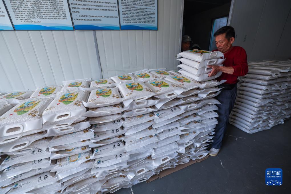 10月18日,在諸暨市蒼湖糧食專業合作社的加工車間里,工人把加工打包好的新米碼放好,準備運往市場銷售。