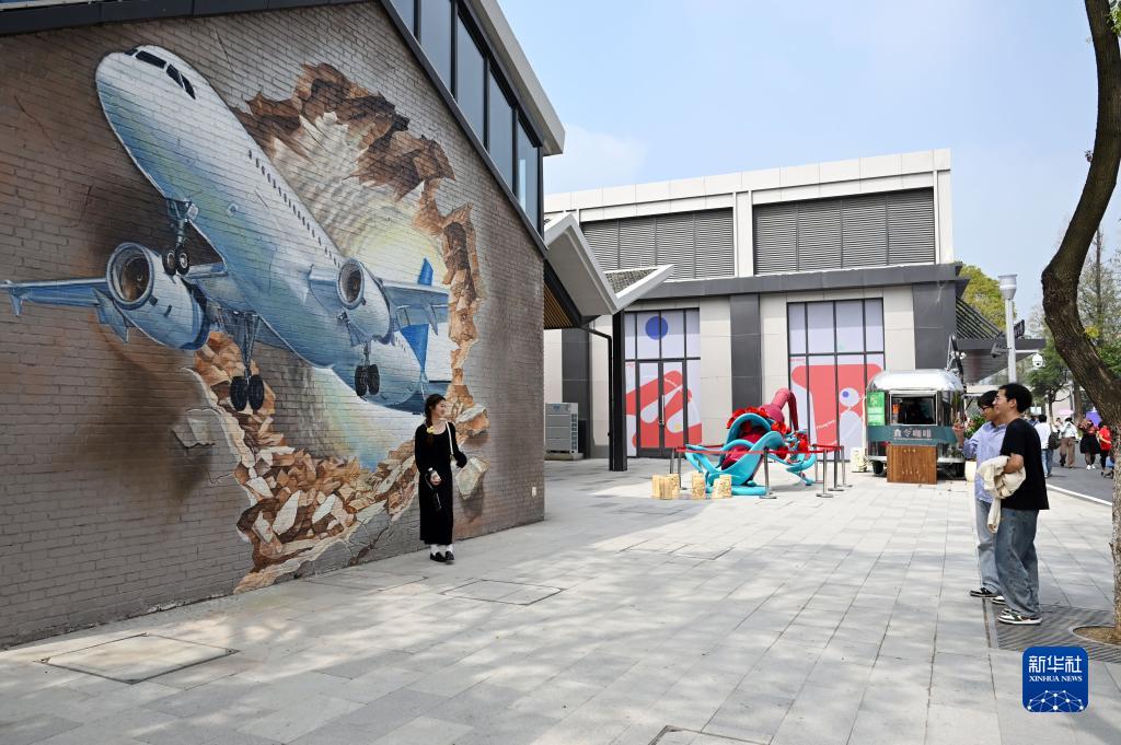 9月27日,游客在合肥駱崗公園內的園博小鎮參觀,該區域由原合肥駱崗機場辦公樓、宿舍區等改造而成。