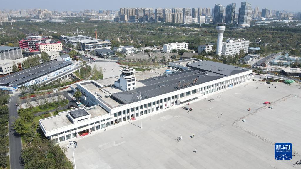 10月17日拍攝的合肥駱崗公園內的城市建設館,該館由原合肥駱崗機場候機樓改造而成(無人機照片)。