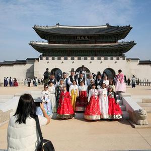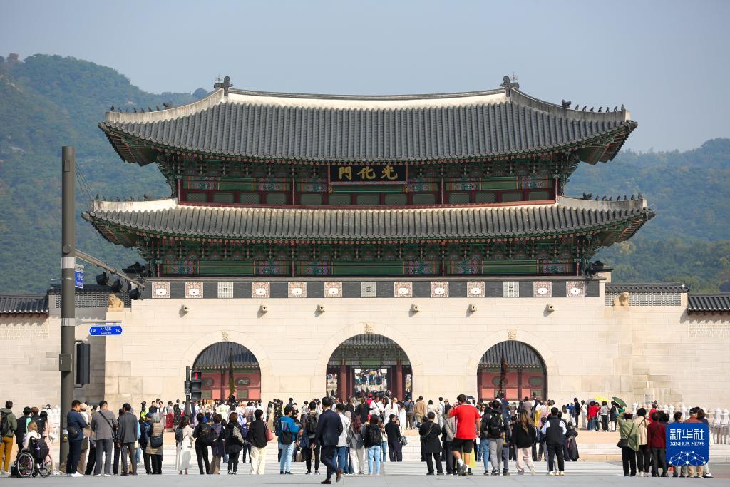 10月18日,游客在韓國(guó)首爾光化門參觀。
