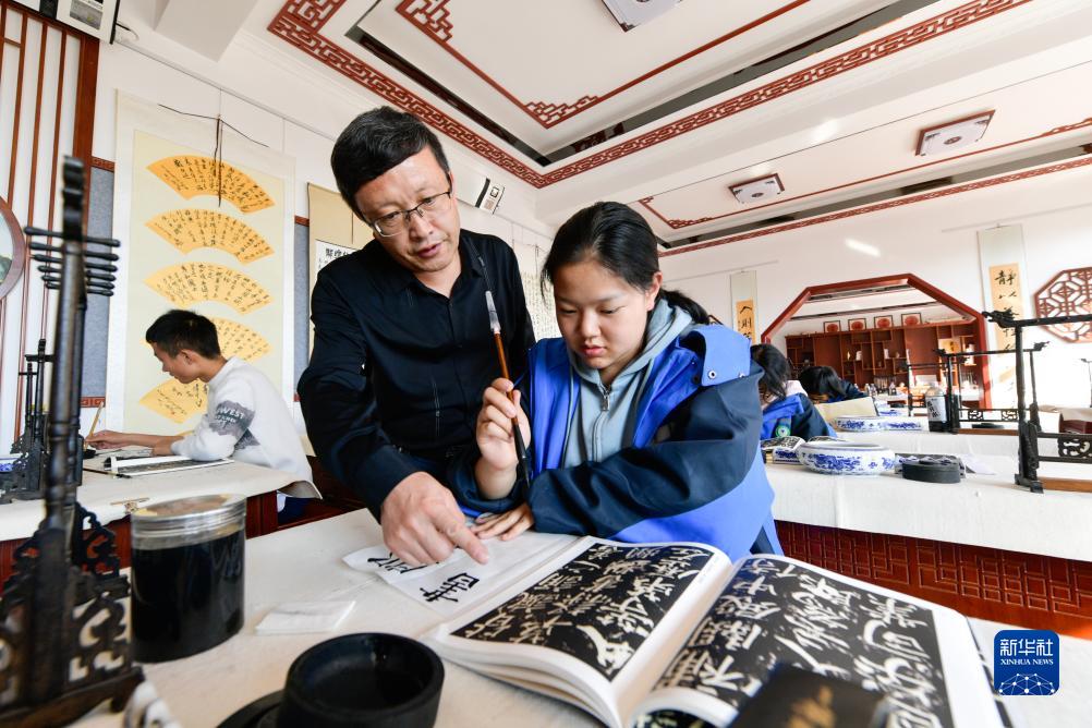 10月16日,蘭州新區高級中學的學生在上書法課。