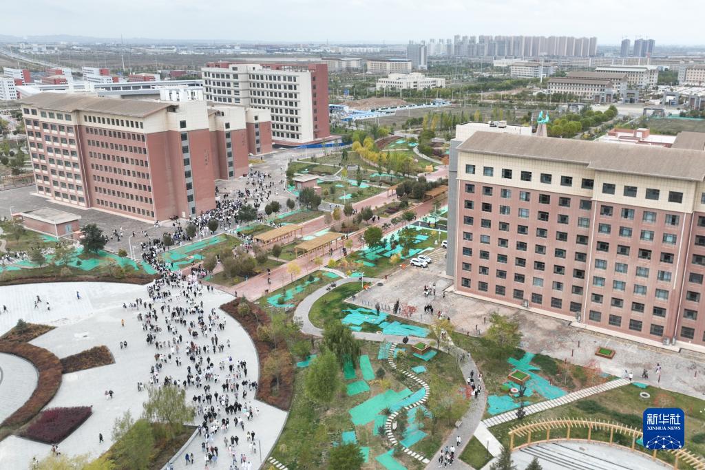 這是10月17日在甘肅省蘭州新區科教園區拍攝的甘肅省衛生職業學院一景(無人機照片)。