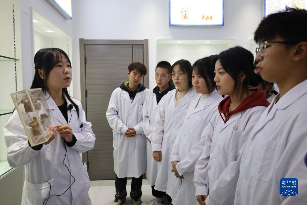 10月17日,在甘肅省蘭州新區科教園區,甘肅省衛生職業學院的學生在人體生命科學館進行觀摩課程。