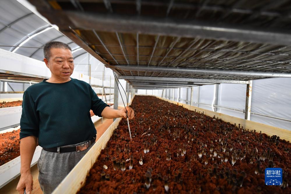 10月18日,在湘潭市雨湖區(qū)姜畬鎮(zhèn)泉塘子村,技術(shù)人員在“5G智慧小菇房”調(diào)試土壤溫度傳感器。