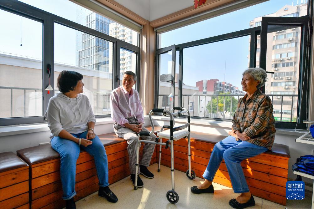 10月17日,老人們在天津市河西區越秀路街道居家養老服務中心休閑曬太陽。