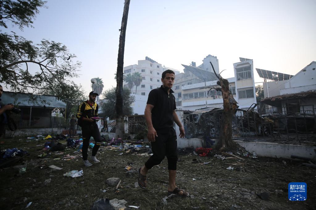 這是10月18日在加沙城拍攝的醫院遭襲現場。