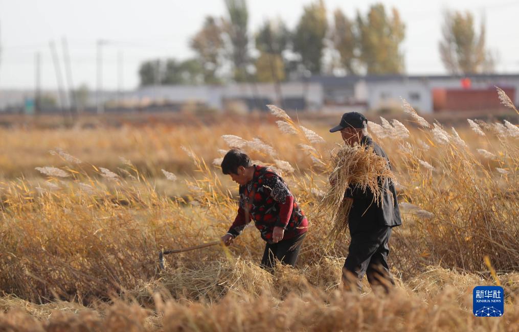 10月18日,在鄂爾多斯市達(dá)拉特旗昭君鎮(zhèn)沙圪堵村,農(nóng)民在田間收割水稻。