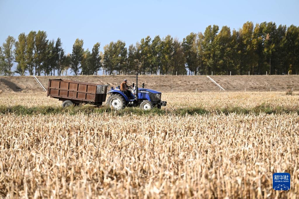 10月18日,在鄂爾多斯市達拉特旗展旦召蘇木柳林村,農民駕駛運糧車在田間行駛。