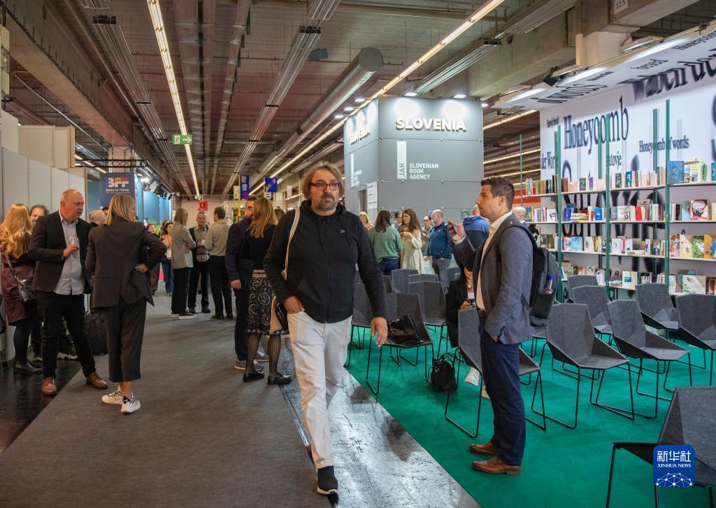 10月18日,在德國法蘭克福,人們在第75屆法蘭克福書展主賓國斯洛文尼亞展區(qū)附近參觀洽談。
