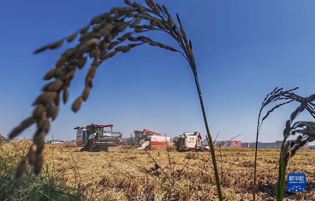 入秋以來,湖南各地晚稻陸續成熟,農民抓住好天氣搶收晾曬。