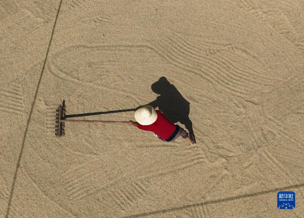 入秋以來,湖南各地晚稻陸續成熟,農民抓住好天氣搶收晾曬。