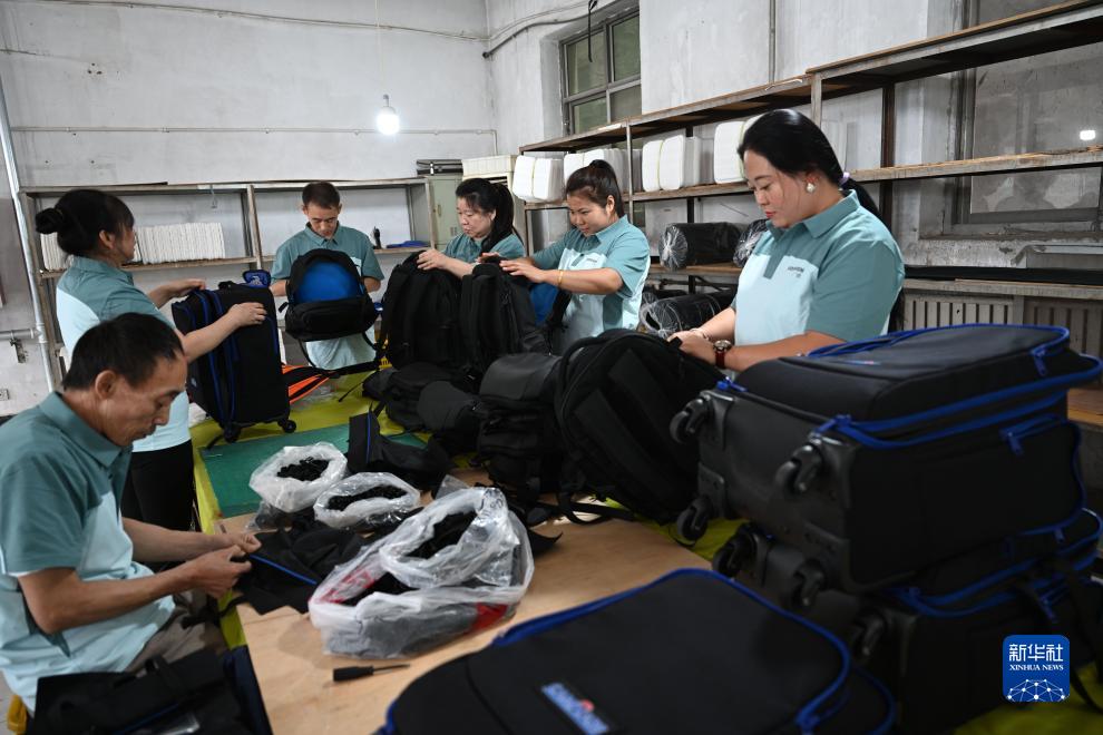10月18日,河北省廣順箱包工業責任有限公司員工對攝影包進行質檢。