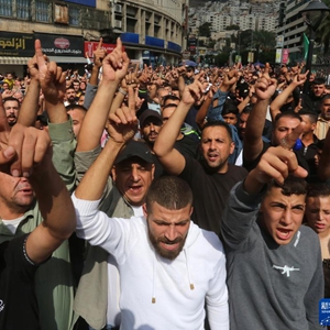 10月18日,在約旦河西岸城市希伯倫,民眾罷工抗議加沙醫(yī)院遭襲。