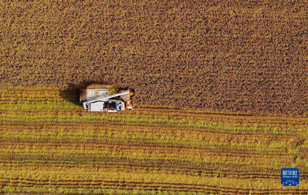 近日,河北省唐山市在鹽堿地上種植的水稻、玉米等秋糧迎來收獲季節,農民們開始適時收獲、晾曬,呈現出一派繁忙的豐收圖景。