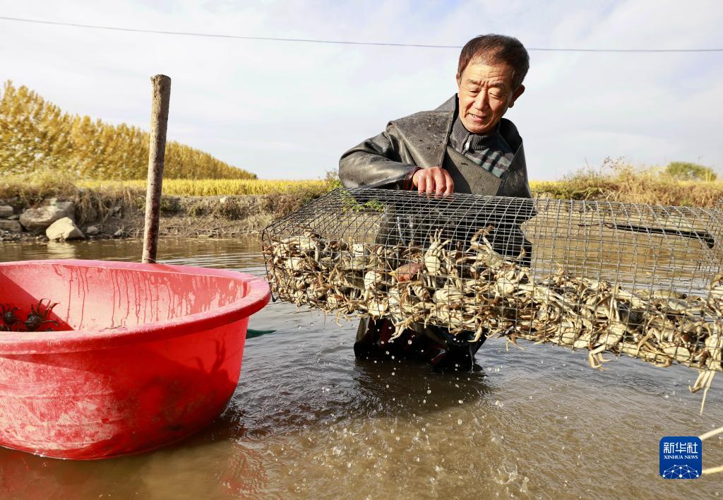 10月18日,唐山市豐南區(qū)柳東村的一位農(nóng)民在捕撈稻田蟹。